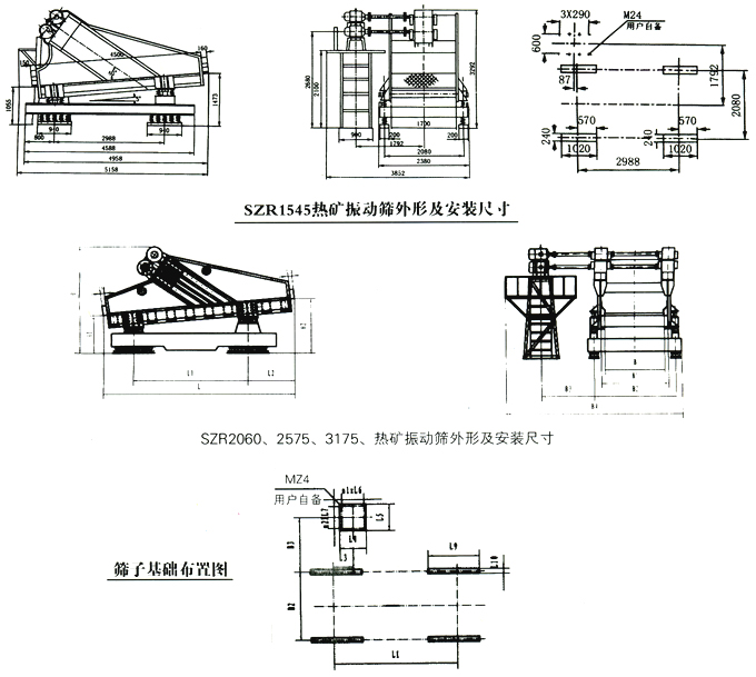 SZR系列熱礦篩均配備二次隔振系統(tǒng),對基礎的動負荷較小,使用于有隔振減要求,安裝高度允許的場合。